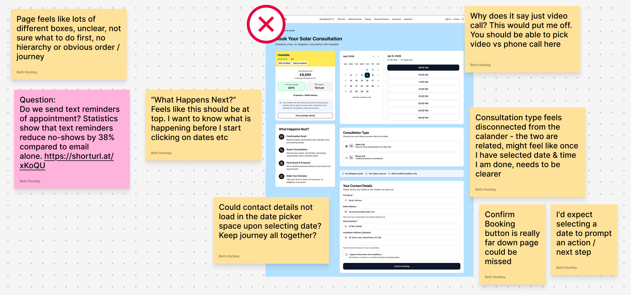 3. The Trust Barrier (Social Proof): I introduced a comprehensive trust layer beneath the booking action. By integrating installer-specific USPs, accreditation logos, and live Trustpilot ratings, I proactively addressed the "industry cowboy" fear exactly where users were most likely to drop off..